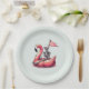 This paper plate features a playful skeleton sailing a pink flamingo boat, accompanied by a flag proudly declaring "Stay Salty."