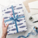 Sardine Fish Navy Blue White Coastal Wrapping Paper