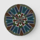 The area surrounding the central motif is adorned with repeating patterns chraacterised by fine lines, small shapes, and textures.