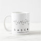 Sascha spelled out in amino acids as S A S C H A (Serine Alanine Serine Cysteine Histidine Alanine) on a mug for the scientist in you.