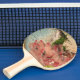 Sashimi is a Japanese delicacy. It primarily consists of very fresh raw seafood, sliced into thin pieces, and served only with a dipping sauce (soy sauce with wasabi paste or such condiments as grated fresh ginger, or ponzu), and such garnishes as shiso and shredded daikon radish.