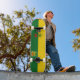 This design features the flag of the Canadian province of Saskatchewan. It features horizontal bands of green and yellow: the green is said to represent the northern wooded areas of the province and the yellow is said to represent grain fields in the southern region. Towards the right is an illustration of a prairie lily, which is a flower native to North American, and towards the left is the coat of arms of Saskatchewan. Roughly half of the province's population lives in the two largest cities, Saskatoon and the provincial capital Regina.