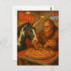 Sasquatch and a Unicorn Eating Pizza Postcard