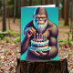 Birthday Sasquatch wishing you a Legendary Birthday! Ai art depicting Bigfoot holding a birthday cake about to blow out the candles.