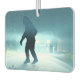 Depicts a late-night encounter with Sasquatch (Bigfoot) on a lonely rural road. Sasquatch is in silhouette against the headlights of a car. Customise by adding your own text on the reverse side. If you live or travel in rural areas of the Pacific Northwest you may possibly come across one of the region’s lesser-known species of native wildlife. “Sasquatch” is an anglicised derivative of the word “Sésquac” which means “wild man” in a Salish Native American language. Sasquatch is reported to be a large, hairy ape-like creature, ranging between 6–10 feet tall, weighing in excess of 500 pounds, and covered in dark brown or dark reddish hair. Alleged witnesses describe large eyes, a pronounced brow ridge, and a large, low-set forehead; the top of the head has been described as rounded and crested, similar to the sagittal crest of the male gorilla. Sasquatch is commonly reported to have a strong, unpleasant smell. Enormous footprints for which it is named are as large as 24 inches long and 8 inches wide. Tufts of hair of an unidentified primate species are often found. Most scientists say Sasquatch, aka Bigfoot, is nothing but folklore and attribute sightings or footprints to misidentification or hoaxes. However, some scientists such as Jane Goodall believe it may exist. One theory suggests Sasquatch are a relic population of ancient hominids which reached North America from Eurasia via the Bering Land Bridge during a period of glaciation. Stories about Sasquatch-like creatures are found among the indigenous population of the Pacific Northwest. The legends existed prior to a single name for the creature. They differed in their details both regionally and between families in the same community. Similar stories are found on every continent except Antarctica to include the Australian Yowie. Members of the Lummi tell tales about Ts’emekwes, the local version of Bigfoot. The stories are similar to each other in terms of the general descriptions of Ts’emekwes, but details about the creature’s diet and activities differed between the stories of different families. Some regional versions contained more nefarious creatures. The stiyaha or kwi-kwiyai were a nocturnal race that children were told not to say the names of lest the monsters hear and come to carry off a person—sometimes to be killed. In 1847, Paul Kane reported stories by the native people about skoocooms: a race of cannibalistic wild men living on the peak of Mount St. Helens. The skoocooms appear to have been regarded as supernatural, rather than natural. Less menacing versions such as the one recorded by Reverend Elkanah Walker exist. In 1840, Walker, a Protestant missionary, recorded stories of giants among the Native Americans living in Spokane, Washington. The Indians claimed that these giants lived on and around the peaks of nearby mountains and stole salmon from the fishermen’s nets. The local legends were combined together by J. W. Burns in a series of Canadian newspaper articles in the 1920s. Each language had its own name for the local version. Many names meant something along the lines of “wild man” or “hairy man” although other names described common actions it was said to perform (e.g. eating clams). Burns coined the term Sasquatch, which is from the Halkomelem sásq’ets (IPA: [ˈsæsqʼəts]), and used it in his articles to describe a hypothetical single type of creature reflected in these various stories. Burns’s articles popularised both the legend and its new name, making it well known in western Canada before it gained popularity in the United States. BFRO provides a free database to individuals and other organisations. Their internet website includes reports from across North America that have been investigated by researchers to determine credibility.