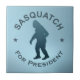 A dark silhouettes of Sasquatch (Bigfoot) on a medium blue background along with block text reading "SASQUATCH FOR PRESIDENT." Not exactly thrilled with the choice of candidates for President this time around? Looking for a Washington outsider? Here's your candidate. In fact, Bigfoot spends just about all of his time outside in Washington, Idaho, Oregon, several other states; and parts of Canada. Big enough to fill any shoes, but no need to worry that he will harangue Congress to impose a radical agenda, left or right, as he is so rarely seen. Vote for a wilder America. Vote Sasquatch! Brought to you by The Cryptozoology Political Action Committee (CPAC); Bonners Ferry, ID