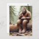 A happy Sasquatch eating a slice of cheesecake he found in the mossy forest cute funny fantasy art AI generated art