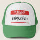 Join the hunt for big foot with this fun hat. It has a pretend name badge that says "Hello, my name is Sasquatch."