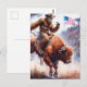 Sasquatch rides a rodeo bull fantasy art postcard