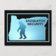 Features the dark silhouette of a Sasquatch (Bigfoot) on a powder blue background enclosed by the outline of Oregon. Go with Sasquatch Security to safeguard your house and valuables. Unobtrusive safety - as Sasquatch are so rarely seen you will hardly know they are there. If you wish to open a Sasquatch Security franchise in your state let me know and I will post a customised logo. If you live or travel in rural areas of the Pacific Northwest you may possibly come across one of the region’s lesser-known species of native wildlife. “Sasquatch” is an anglicised derivative of the word “Sésquac” which means “wild man” in a Salish Native American language. Sasquatch is reported to be a large, hairy ape-like creature, ranging between 6–10 feet tall, weighing in excess of 500 pounds, and covered in dark brown or dark reddish hair. Alleged witnesses describe large eyes, a pronounced brow ridge, and a large, low-set forehead; the top of the head has been described as rounded and crested, similar to the sagittal crest of the male gorilla. Sasquatch is commonly reported to have a strong, unpleasant smell. Enormous footprints for which it is named are as large as 24 inches long and 8 inches wide. Tufts of hair of an unidentified primate species are often found. Most scientists say Sasquatch, aka Bigfoot, is nothing but folklore and attribute sightings or footprints to mis-identification or hoaxes. However, some scientists such as Jane Goodall believe it may exist. One theory suggests Sasquatch are a relic population of ancient hominids which reached North America from Eurasia via the Bering Land Bridge during a period of glaciation. Stories about Sasquatch-like creatures are found among the indigenous population of the Pacific Northwest. The legends existed prior to a single name for the creature. They differed in their details both regionally and between families in the same community. Similar stories are found on every continent except Antarctica to include the Australian Yowie. Members of the Lummi tell tales about Ts’emekwes, the local version of Bigfoot. The stories are similar to each other in terms of the general descriptions of Ts’emekwes, but details about the creature’s diet and activities differed between the stories of different families. Some regional versions contained more nefarious creatures. The stiyaha or kwi-kwiyai were a nocturnal race that children were told not to say the names of lest the monsters hear and come to carry off a person—sometimes to be killed. In 1847, Paul Kane reported stories by the native people about skoocooms: a race of cannibalistic wild men living on the peak of Mount St. Helens. The skoocooms appear to have been regarded as supernatural, rather than natural. Less menacing versions such as the one recorded by Reverend Elkanah Walker exist. In 1840, Walker, a Protestant missionary, recorded stories of giants among the Native Americans living in Spokane, Washington. The Indians claimed that these giants lived on and around the peaks of nearby mountains and stole salmon from the fishermen’s nets. The local legends were combined together by J. W. Burns in a series of Canadian newspaper articles in the 1920s. Each language had its own name for the local version. Many names meant something along the lines of “wild man” or “hairy man” although other names described common actions it was said to perform (e.g. eating clams). Burns coined the term Sasquatch, which is from the Halkomelem sásq’ets (IPA: [ˈsæsqʼəts]), and used it in his articles to describe a hypothetical single type of creature reflected in these various stories. Burns’s articles popularised both the legend and its new name, making it well known in western Canada before it gained popularity in the United States. BFRO provides a free database to individuals and other organisations. Their internet website includes reports from across North America that have been investigated by researchers to determine credibility.
