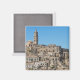 Souvenir photo magnet with the ancient architecture of the Sassi di Matera with houses cut into the mountain like caves on a clear day with a blue sky in the Basilicata region in southern Italy.