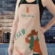 A personalised apron that would make a perfect newlywed gift, bridal gift, Thanksgiving or Harvest gift for a hostess, a Friendsgiving gift, but also birthday, Christmas or Mother's Day gift, featuring a retro drawing of a sassy cowgirl and the word YEEHAW. Personalise it with a name - bride, sister, with your mum's name (or Nana etc.) and the year (or other text). A lovely elegant, simple women's cooking apron for cooking, baking or any other use. Gift it to a bride, your mum, grandma, your sister, wife... or any other special woman in your life. who loves country western and cowgirl designs. Terracotta and teal.
