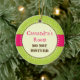 Perfect room decor for that sassy girl! Great to hang on your daughter's door. Bright tones of lime green and magenta call attention to this ornament highlighting your message in the circle against the leafy swirled background. Available in alternate colours with matching products.