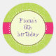 A sticker for that sassy girl! Perfect for using at birthday parties or everyday use. Bright tones of green and pink call attention to this sticker highlighting your message in the circle against the leafy swirled background. Available in matching products.