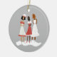 A sassy African American santa. A modern look. Red and white dresses, matching booties and a just enough snow to make you feel like Christmas. This ornament is great for best friends, sisters, sorority girls or you.