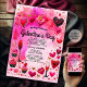 This cute invitation has pink and red watercolors with cute sketched hearts going around the invitation, with wine glasses and cupcakes. So cute for a Galentine's Day party which is a party for woman before Valentine's day in celebration of friendships, girls and women. So cute and fun.