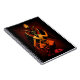 The Satanic Goat appears on the cover of this spiral notebook.  It holds 80 pages.  Pages are lined.  6.5" x 8.75".  The Levi Baphomet from the 19th century reimagined and presented here in flaming colour for the new Satanic era. This will look greating hanging on the wall of your castle. Available as a poster, print or as a painting on canvas. Framed or unframed. In 1854, French occultist Eliphas Levi published his famous book on the Doctrine and Ritual of Transcendental Magic. The frontispiece included an engraving of the horned god which he called "Baphomet" and "The Goat of Mendes." The image horrified many and inspired others in what has been called the French occult revival of the 19th century. The figure represented the absolute and featured various occult symbols including a point-up pentagram on the forehead, mudra handsigns, and the words "Solve" and "Coagula" on the arms. Despite the graphic's intended of representing occult wisdom generally, orthodox Christians have long chraacterised it as satanic. Those of a truly devilish bent, however, have tended to find the old image dated, tame and thus uninspiring. Here that classic image is re-created with explicitly Satanic imagery and symbols; the point-down pentagram, the inverted cross, the 666, the brimstone alchemical glyph, etc. Let there be no question of representation of this archetype. No need to wear a slightly disturbing, ambiguously evil symbol. Now you can have a provocative, unmistakably satanic image.