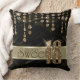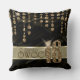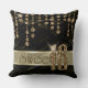 This elegant Sweet Sixteen throw pillow features a giant, gold faux-glitter '16' and ribbon over a black satin effect background adorned with a pattern of hanging jewels. Add a celebrant's name using the provided template. Search ID260 to see other products with this design.