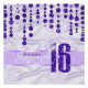 This elegant Sweet Sixteen poster features a giant, purple faux-glitter '16' and ribbon over a satin effect background adorned with a pattern of hanging jewels. Add a celebrant's name using the provided template. Search ID260 to see other products with this design.
