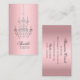 Satin pink gradient background with gradient grey chandelier feature. Pretty script and classic serif font pairing for all contact information to your special events business. Elegantly feminine.