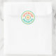 Colourful turquoise, orange and yellow circular design with a "Satisfaction Guaranteed" message