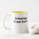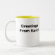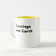Cutes Saucer Buddies Mug with the words "Greetings From Earth" printed on the reverse side.