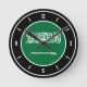 Saudi Arabia Flag Elegant Round Clock with the Saudi Arabia flag positioned in the middle and lovely white clock numbers on the clock edge. Delightful black background with the white oval elements finalise the design putting emphasis on the elegance. Beautiful combination of black and white with the skilful integration of the national flag colours make this clock the perfect gift and the great show piece on the wall. © 2022 CountriesOfTheWorld