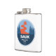 Well made flask, a little better than I had expected. Flask came in clear plastic box which gave it a nice presentation when I took it out of the zazzle packaging. Image is not printed on flask but on sticker. Don't know how this will hold up I haven't used it yet. This would make a Great gift! I plan to purchase more for friends! Cheers. I thought a little brighter than computer. Very crisp, writing wasn't
