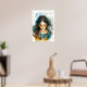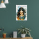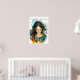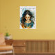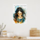 Make a bold statement with this captivating 20"x28" poster, featuring a stunning watercolor illustration of a young girl with flowing dark hair, freckled cheeks, and a serene, introspective expression. Her vibrant dress blooms with intricate floral details, blending seamlessly with the expressive splashes of blue, orange, and earthy tones that surround her.