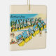 A fun, colourful retro, vintage postcard for Savannah Beach, Georgia repurposed on a ceramic ornament.