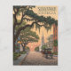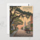 Charming Savannah, Georgia street with historic homes, moss-draped oaks, and warm evening light.