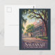 Savannah Georgia Illustration Travel Art Vintage Postcard
