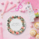 This "A little peach is on the way" baby shower paper plate features a watercolor peach, white florals, and a playful handwritten font. It's perfect for your fruit inspired baby shower. Pair with anything in the SAVANNAH Collection for a cohesive look.