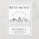 A unique modern deco-style moving announcement postcard for the beautiful city of Savannah, Georgia. This card features a stylised illustration of the city's unique skyline with its name underneath. This is followed by your address information in a matching open-lined style. All individual elements of the card are unlocked so feel free to change or add any details necessary by using the customisation function.
