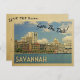 Vintage Savannah Save The Date postcards featuring a city skyline view. This cool mid-century retro design is the perfect way to gather guests to your Savannah Georgia destination wedding.