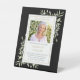 An elegant black and gold mother of the bride wedding memorial pedestal sign featuring a special photo, watercolor greenery and your own personalised poem. Reserve a seat at your ceremony at the table she would have sat at. Designed by Thisisnotme©