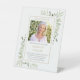 An elegant mother of the bride wedding memorial pedestal sign featuring a special photo, watercolor greenery and your own personalised poem. Reserve a seat at your ceremony at the table she would have sat at. Designed by Thisisnotme©