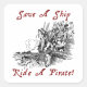 It’s time to show you metal shipmate and release your inner pirate. The bold battle seen of a ship being boarded by hardy buccaneers and red text saying “Save a Ship Ride A Pirate” lets every one see your Pirate Pride!