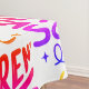 Years ago I got a matching runner from elsewhere and was so thrilled to find this same pattern offered as a tablecloth. The material is very high quality and it is well-constructed. Also it got here just in time for my party tomorrow! Would buy from this seller again. Colors are very sharp. It’s perfect. Well done