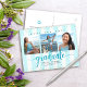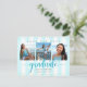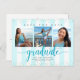 Make sure all your friends and relatives will be able to celebrate your daughter’s milestone graduation! Send out this stunning, simple, modern, girly, personalised three photo “Save the Date” postcard for an event to remember. Sparkly turquoise typography script overlays a baby turquoise blue and white striped background with tiny turquoise and gold confetti dots. Add three photos of your choice and personalise the custom text with your graduate’s name, school name and date. Your custom message, a turquoise blue graduation cap icon and your return address adorn the back. Matching invites, thank you cards, cap toppers, napkins, plates and other graduation goodies are also available in this trendy and stylish collection. Guaranteed to add stylish fun to her special occasion!