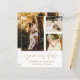 Elegant and simple save our date announcement. This template features space for 3 of your favourite couples photos in white with cool hand written calligraphy in gold. Easy to edit with your own unique details.
