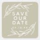 Laurel leaves frame the text "save our date" in sage sticker.