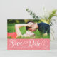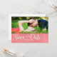 Postcard announcement of your wedding date. Use your full horizontal image with "Save our Date" on a coloured background. Customise your names and date on front and back.