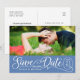 Postcard announcement of your wedding date. Use your full horizontal image with "Save our Date" on a coloured background. Customise your names and date on front and back.