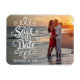 Announcement of your wedding date on a magnate. Use your full horizontal image with "Save the Date" superimposed on the photo. Optional dark gradient for white script to stand out if your background is too light. Just remove the gradient if you don't need it. Backside colour is customisable.