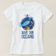 Spread awareness about the protection of our oceans and marine life with this beautiful t-shirt featuring an illustration of our planet with sea animals (whale, sea turtle, octopus, fishes, coral, and crab) with the customisable caption "Save our oceans" in a blue all-caps font