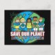 Group of children with Earth and recycle shirts, a frog and trees with Earth background! Save Our Planet, Do It For The Kids message to conserve and recycle, help animals and help save the earth for our kids future!