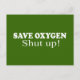 For those with tweens or teens, this maxim is for their parents. Oxygen alone is O…O2 is oxygen gas & O3 is ozone. So the shortcut would be, “O--Shuddup!” These symbols can be an entry into a science career or other STEM sphere. Make it happen, Millennials! Created by earthday which also exhorts Save Oxygen, Shut Up! on ties, mousepads, trucker hats & mesh caps. Earthday has oodles of snazzy green items with different clever environmental mottos, e.g., Support wildlife--throw a party! P.S. While you’re listening, stop breeding…6 billion miracles is enough!