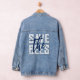 Save The Bees Elegant White Blue Script Typography Denim Jacket