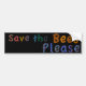 Concerned about the declining bee population? Spread the word: Save the Bees Please! This funky bumper sticker is ideal for getting the message out; be sure to tell at least one person during the day: Save the Bees Please! To get a closer look at this design, please visit HoneyPot blog and gallery at http://honeypot4thebees.wix.com/honeypot.